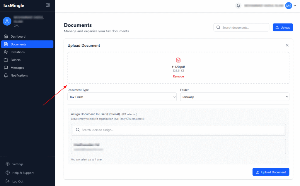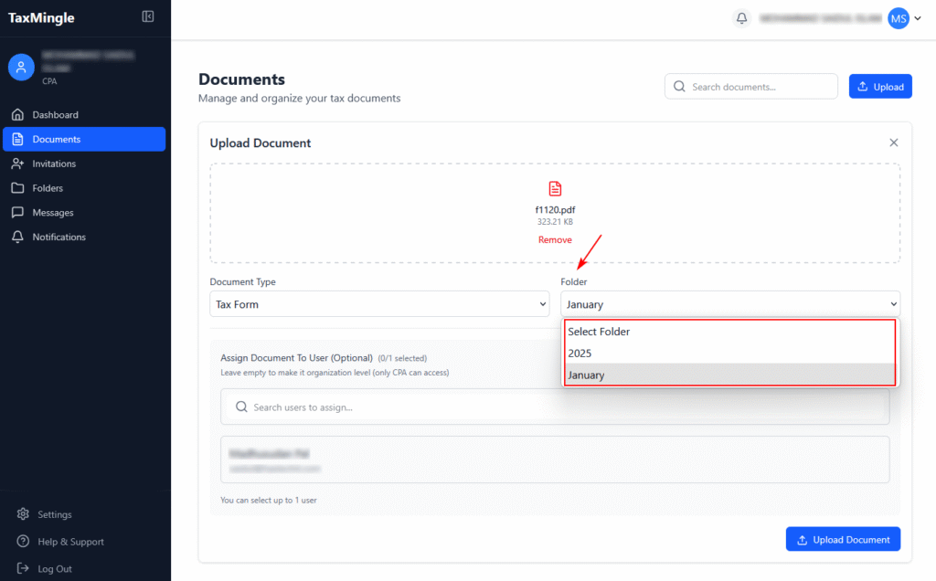 This guide will help you upload tax documents, assign them to clients, and organize them into folders for better document management in TaxMingle.
